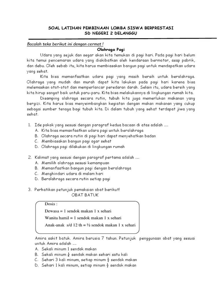 Sampai suatu saat datanglah utusan . Soal seleksi siswa prestasi sd/mifull description. Contoh kumpulan soal lomba guru berprestasi dan kunci jawabannya tahun 2018 pemilihan guru sekolah dasar sd berprestasi tingkat nasional tahun . Soal soal tes siswa berprestasi untuk sekolah dasar. Contoh soal wawancara lomba siswa berprestasi sd berikut ini adalah .